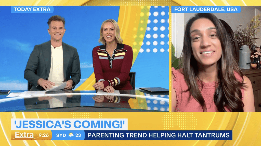 Dr. Mona Amin shares why the viral “Jessica” trend can work in the moment for young toddlers: it creates a pause, redirects attention, and stops the escalation. She explains that it is a short-term interruption and encourages parents to come back with support afterward.